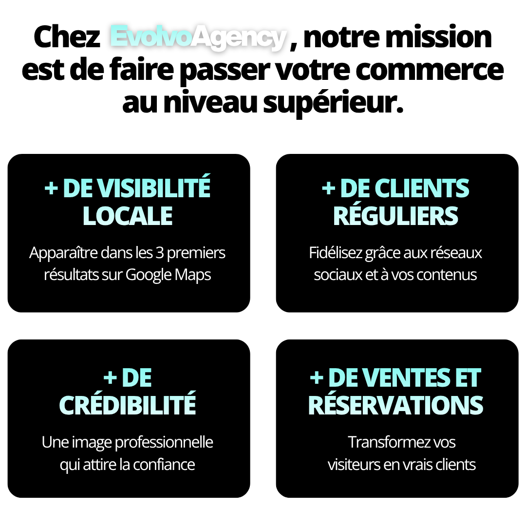 Nous gérons tout : création du site, photos, vidéos, réseaux sociaux, publicités…